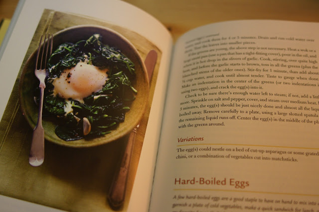 ANYWAY... While we were waiting for our onions to caramelize, I wanted to have something to eat as an appetizer. I immediately thought of Judith Jones's Steamed Eggs Nestled in a Bed of Greens.