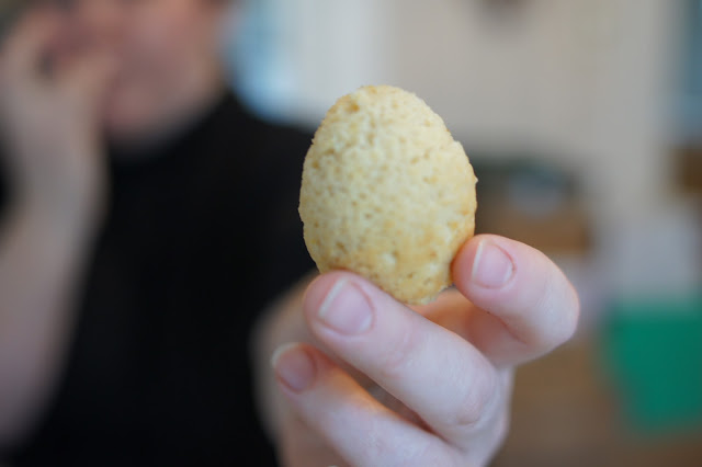 Sanne found a super cool recipe for tiny cakes baked inside of hollowed-out Easter eggs, and I finally decided on a salad. We also decided on white truffle green beans and a quiche. Jordan brought two different kinds of Matzo Kugel -a traditional Passover dish.